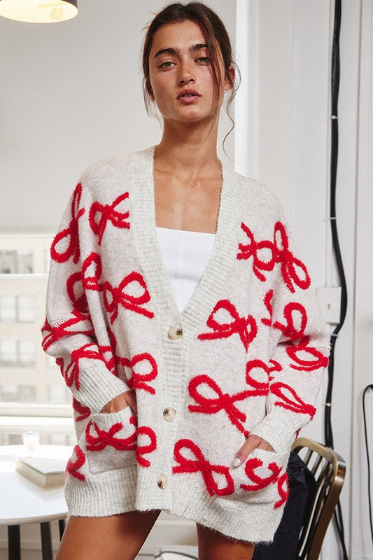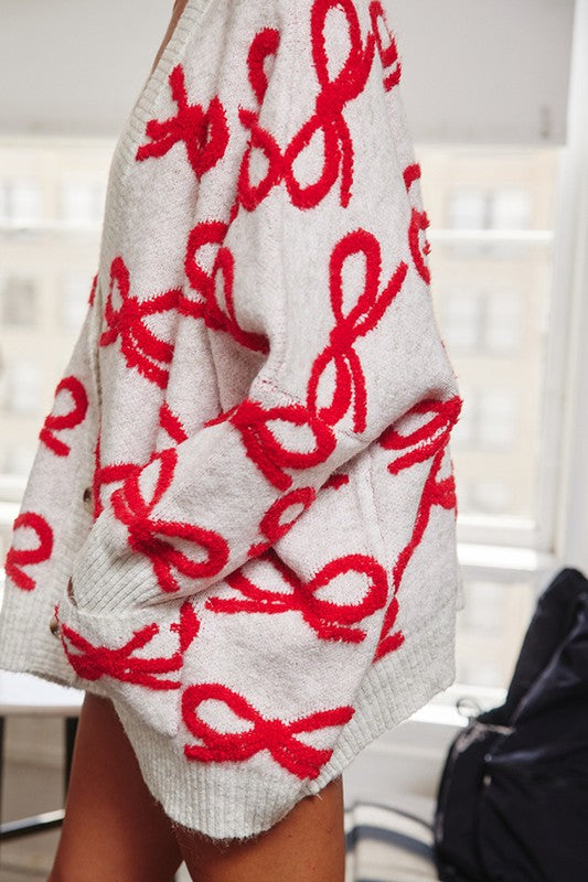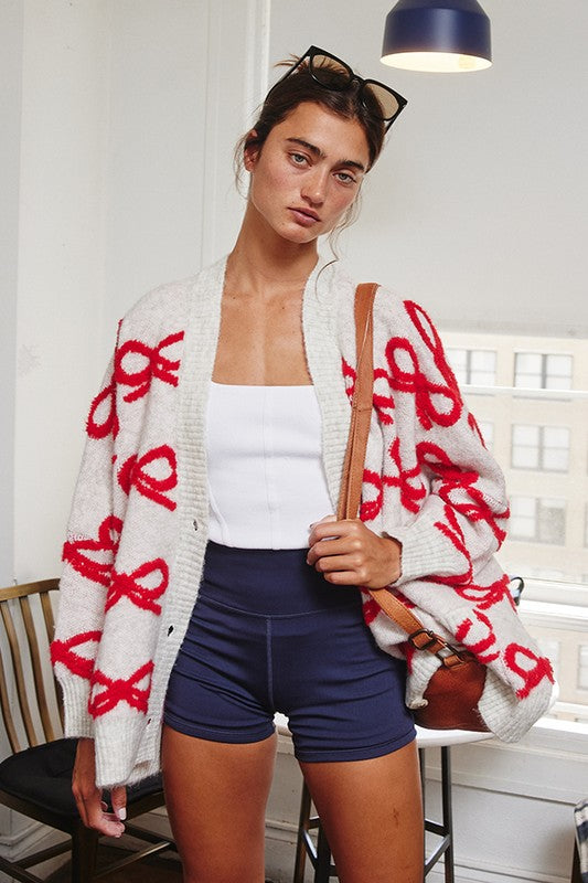 Oversized Ribbon Pullover Sweater Cardigan