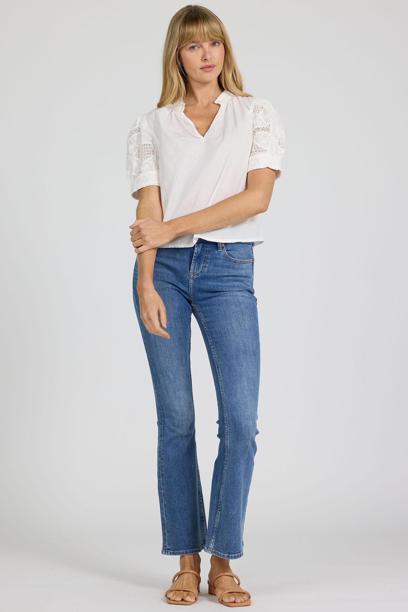 Vneck Short Sleeve Blouse, Lace Puff Sleeve, Vneck, Short Sleeve, Relaxed, Wovens,
